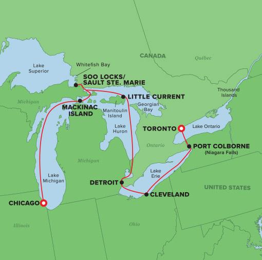 Embark Victory Cruise Lines in Chicago and disembark in Toronto on their 13-night itinerary or end your journey in Niagara Falls on their shorter sailings, or simply start and end your sailing in Chicago.