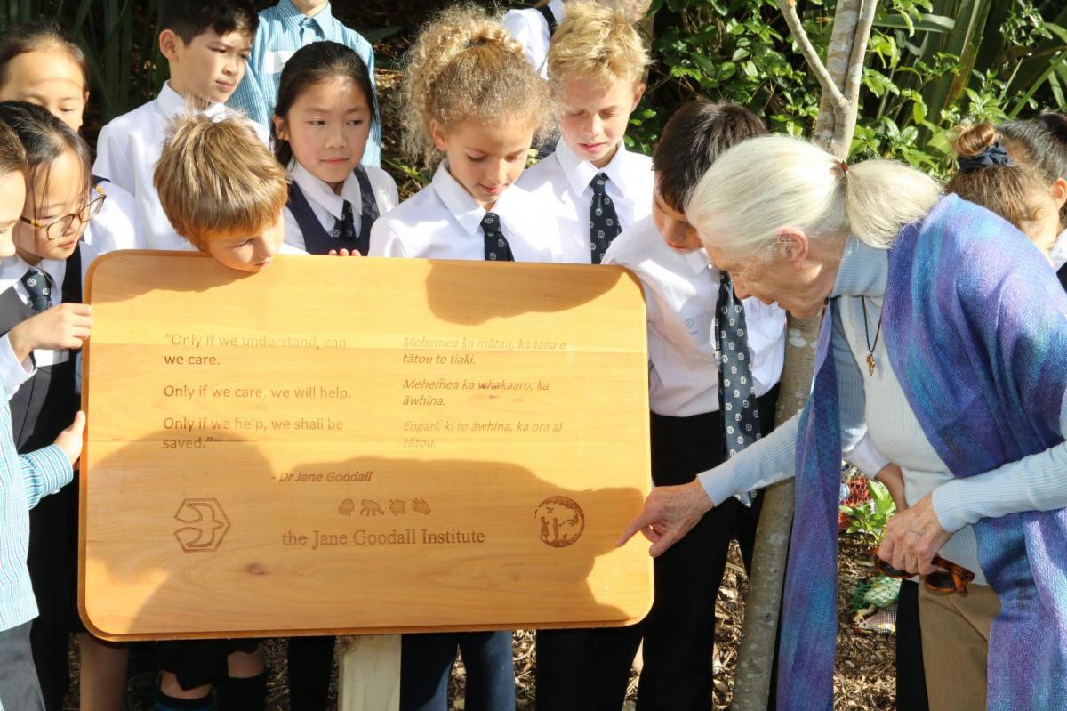 Together they planted kotukutuku trees and Dr Jane unveiled two wooden plaques with her inspiring, world-renowned conservation messages and Te Reo translations. Year 5 student Holly MacKay said, “It was amazing planting trees with Dr Jane Goodall. She has a tradition of kissing the leaves of each tree she plants and we did this together. Never in my wildest dreams had I ever imagined I would get this opportunity”.