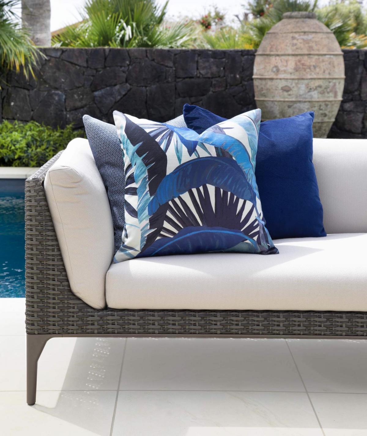 Cushions: Not just for interiors, cushions are key to dressing an outdoor space, adding both style and personality. Definitely go for fun contrasting patterns and textures in high performing fabrics - there are even outdoor velvets which are beautifully plush and glam. I suggest larger sized cushions to elevate your look.