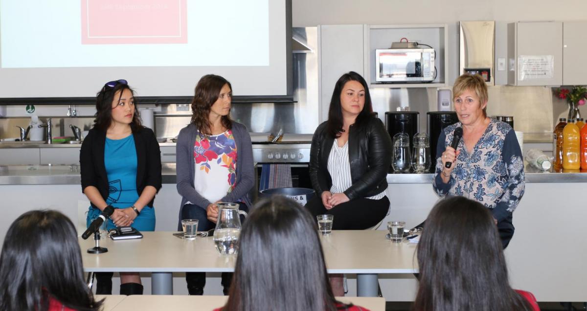 Janet Van (NanoGirl Labs), Jo Aleh (Olympic Sailor) and Ebony Duff (General Manager of a radio network of 21 stations - pictured above from left) shared their stories of life at Westlake, and their career progression since they left high school. Pauline Harrison, who ran a leadership course for our Prefects this year, led the discussion.