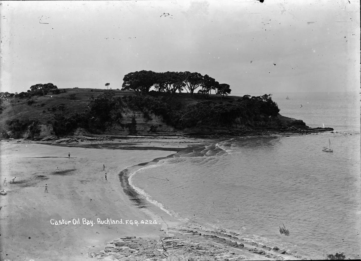 [In the latter part of the nineteenth century], when there was a feast at Orakei, boatloads of Māori came from Whangaparaoa to Browns Bay - it seemed to be a half way resting place and camped on the flat spot at the beach end of Browns Bay Road. Mr [Peter] Brown [the owner of Browns Bay] never antagonised the Māori, and was friendly towards all. So, they fished, gathered mussels, …etc, and cooked them in their steam ovens. They also had dried shark, which had an offensive odour. They packed the food into their boats and then onto Orakei… A pa [more likely a kainga or unfortified village] was situated on the hillside in Glencoe Road, and they made a garden in part of the paddock which was allowed to them. They fenced it and grew melons, potatoes (riwai) and kumara".