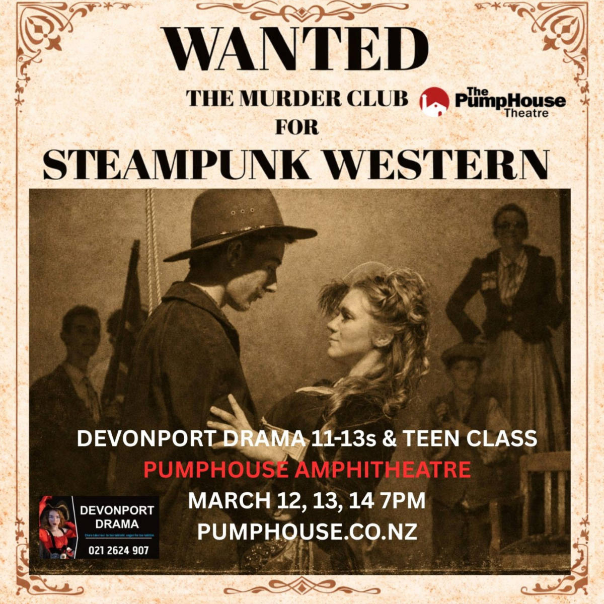 Then things move to our fabulous Outdoor Amphitheatre! Devonport Drama’s Steampunk Western storms in from 12 - 14 March with zombies, high noon tension, and a deliciously bonkers blend of Wild West flair and theatrical invention. It is bold, playful, and proudly student-powered.