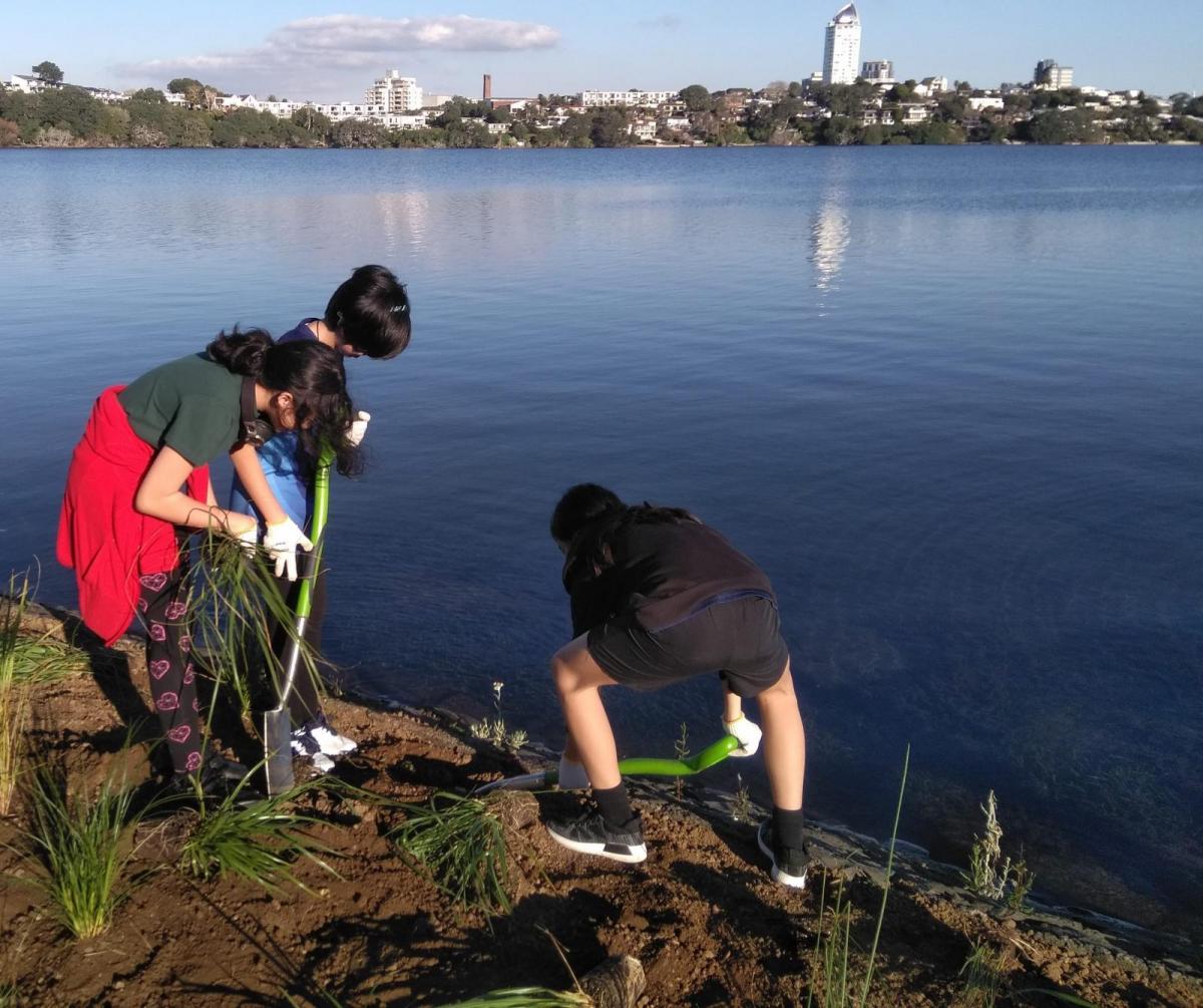 Carmel College’s new Adopt-A-Park Club recently planted grasses in Sylvan Park as part of a new Auckland Council/school initiative to improve Lake Pupuke environs.