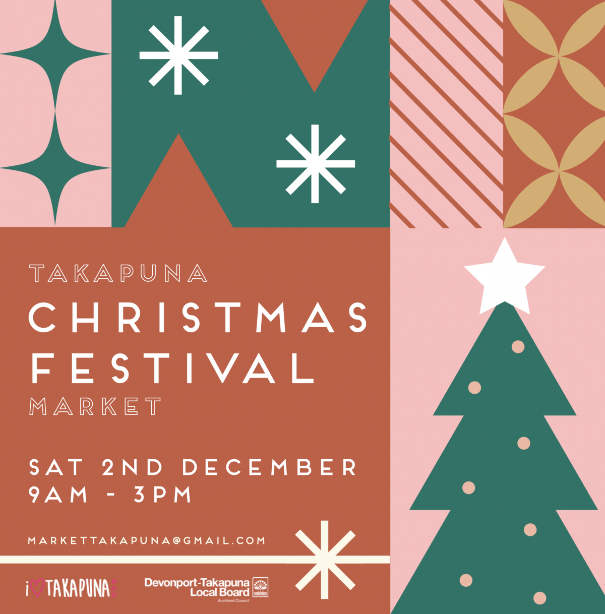 Before you know it, the spring days have flown by and it’s already time to start thinking about Christmas! The annual I Love Takapuna Christmas Festival is back on Saturday 2 December and will be held in the brand new Waiwharariki Anzac Square! We will also have a wonderful boutique market right along Hurstmere Road (from Lake Rd intersection to Anzac St roundabout), as well as the usual kids' activities, entertainment and shows, plus an opportunity to meet Santa Claus! Make sure you keep an eye on our social media for event updates and details: @SunshineEventsNZ on Facebook and Instagram.