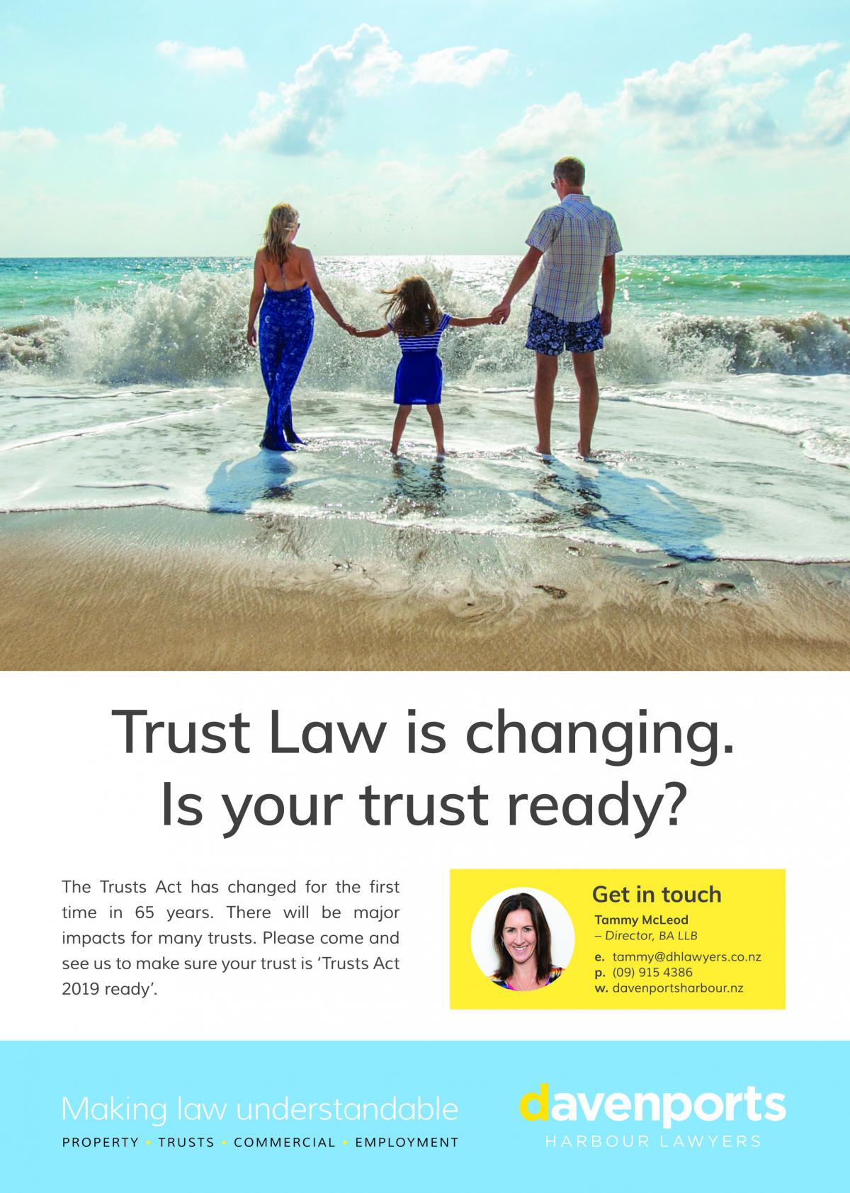 Tammy McLeod (BA LLB) is a director at Davenports Harbour and a trust and asset structuring specialist. Tammy leads the Davenports Harbour Trust Team and enjoys providing clients with advice and assistance on a broad range of issues involving the structuring and establishment of asset plans, interpretation of trust deeds, the management and administration of trust funds and trust disputes. An important part of Tammy’s practice is reviewing existing asset holding structures to ensure they achieve the needs and requirements they were established to meet. She is also experienced in Property (Relationships) Act issues and advises clients on both contracting out agreements and separation. Tammy is a past president of the Auckland Woman Lawyers’ Association and is the current vice-president of the North Harbour Club.