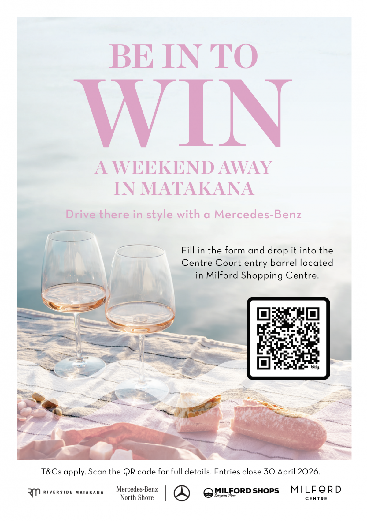 Milford is the place to come to if you want to get mum the gift she deserves. While you are there, remember to enter her in our great giveaway! A big Mother’s Day promotion is on this month across Milford town centre. Entry forms are available in participating stores to win a weekend away at the idyllic Riverside Matakana with the use of a new Mercedes-Benz from the wonderful people at Mercedes-Benz North Shore. Enjoy staying in your own chalet amongst the grape vines, with excellent guest facilities and only a short distance from the Matakana Village and all its attractions. Also, check out Milford's social media, where there will be two campaigns with prizes for mum on both the Milford Shops and Milford Shopping Centre platforms. Mother's Day is on Sunday 10 May.