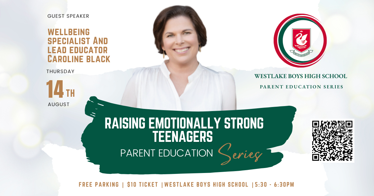 As part of our Parent Education series, we’re pleased to welcome wellbeing specialist and educator Caroline Black for a special session with parents and whānau. Our guest speaker will explore timely and practical strategies for supporting our teens’ emotional development. Her presentation, on Thursday 14 August, will focus on: