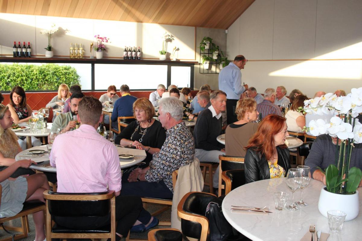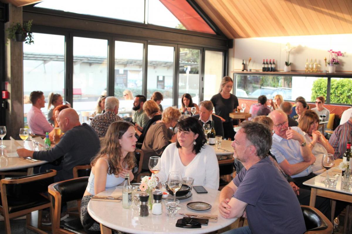 Renowned architect Gordon Moller worked to his brief to ‘make a statement’ of this stand alone, purpose-built restaurant. The concrete and glass give it a modern edge while the pitched cedar ceiling envelopes the diner and is greatly admired. Banquette seating is placed around two sides allowing diners to look over other tables and out to the street. Quality glassware, cutlery and fresh flowers set the tables beautifully and the noise control wall panelling buffers noise so those hard of hearing can relax and enjoy their companions.