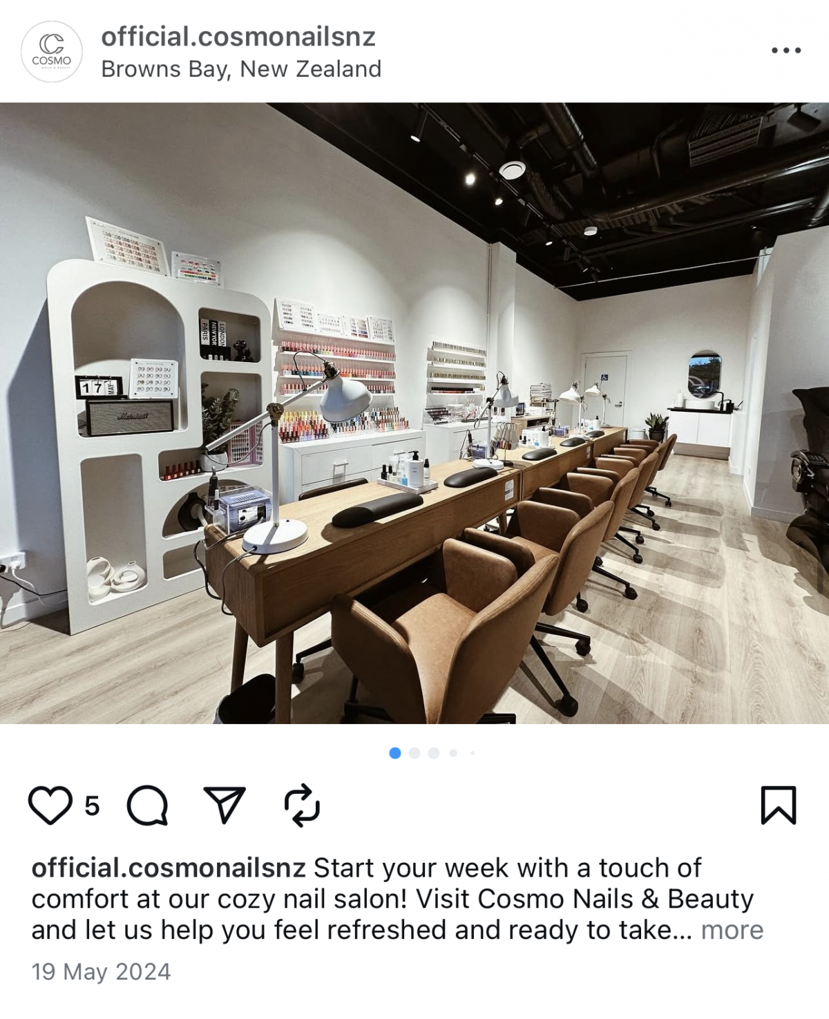 Henry and his wife, Crystal, are the proud owners of Cosmo Nails in Browns Bay. Henry says that with years of experience managing a popular nail salon in Westgate, together they decided it was time to pursue their own dream. “We moved to the beautiful Browns Bay area to establish Cosmo Nails & Beauty, a place where our passion for quality services meets genuine community connection. It was a leap of faith, but one that we’re immensely proud of." He talks to us about their presence on social media and growing the business.