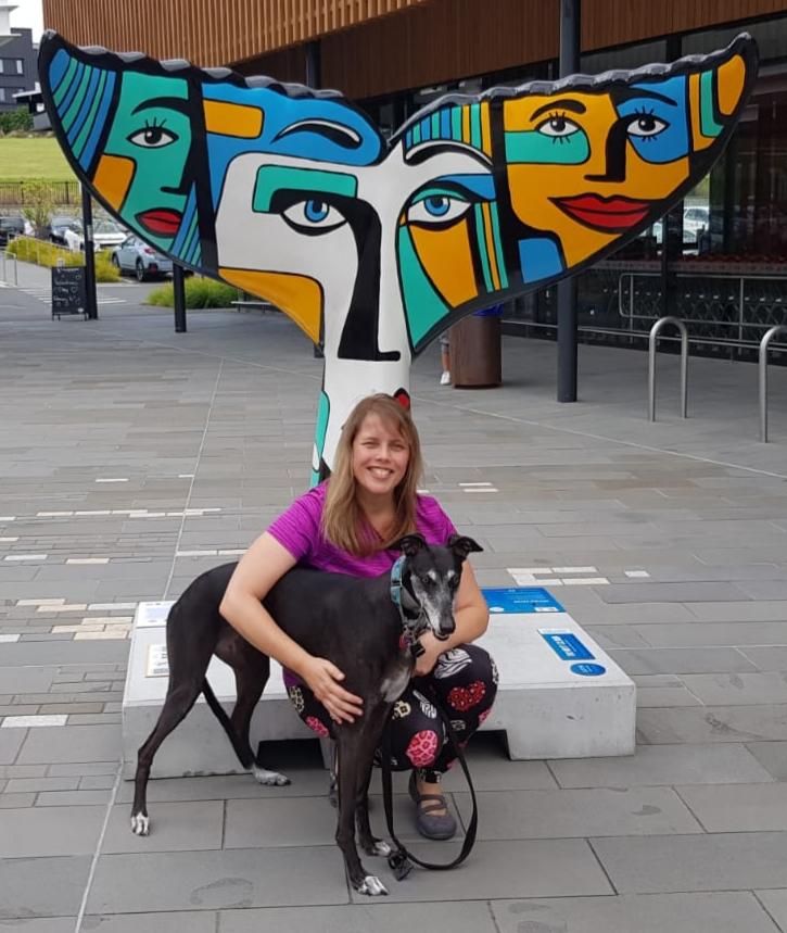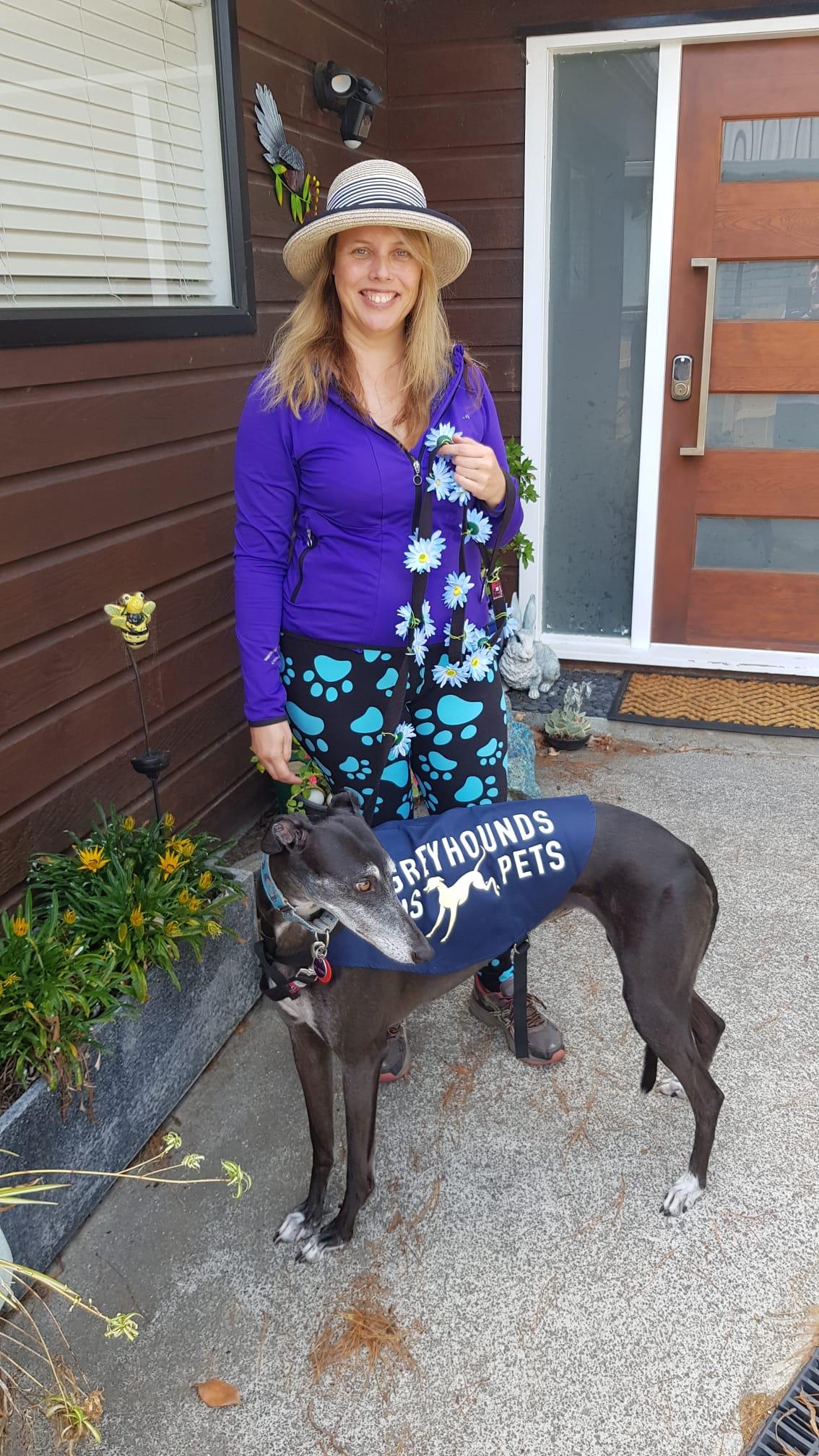 Mary-Anne Smith: I spent a week visiting a friend who had two retired racing greyhounds and instantly fell in love with these elegant and very affectionate dogs, totally different to any other breed I'd previously owned. I started stalking all the lovely photos of the dogs on the GAP website, joined their FB group and attended a couple of their monthly dog walks where I had the opportunity to meet and walk many of their foster dogs. It didn't take long until I met my perfect match - Dolly (Jetsun Swan).