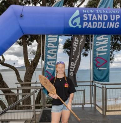 Takapuna Grammar student Rosara Davis is a multi-sport athlete, also excelling in cycling and kayaking. She got into SUP racing as she grew up watching her parents race, but “soon fell in love with it through paddling at Takapuna and quickly loved the mix of endurance, skill and ocean conditions. Every race is different depending on wind, swell and tactics, which makes the sport really exciting.