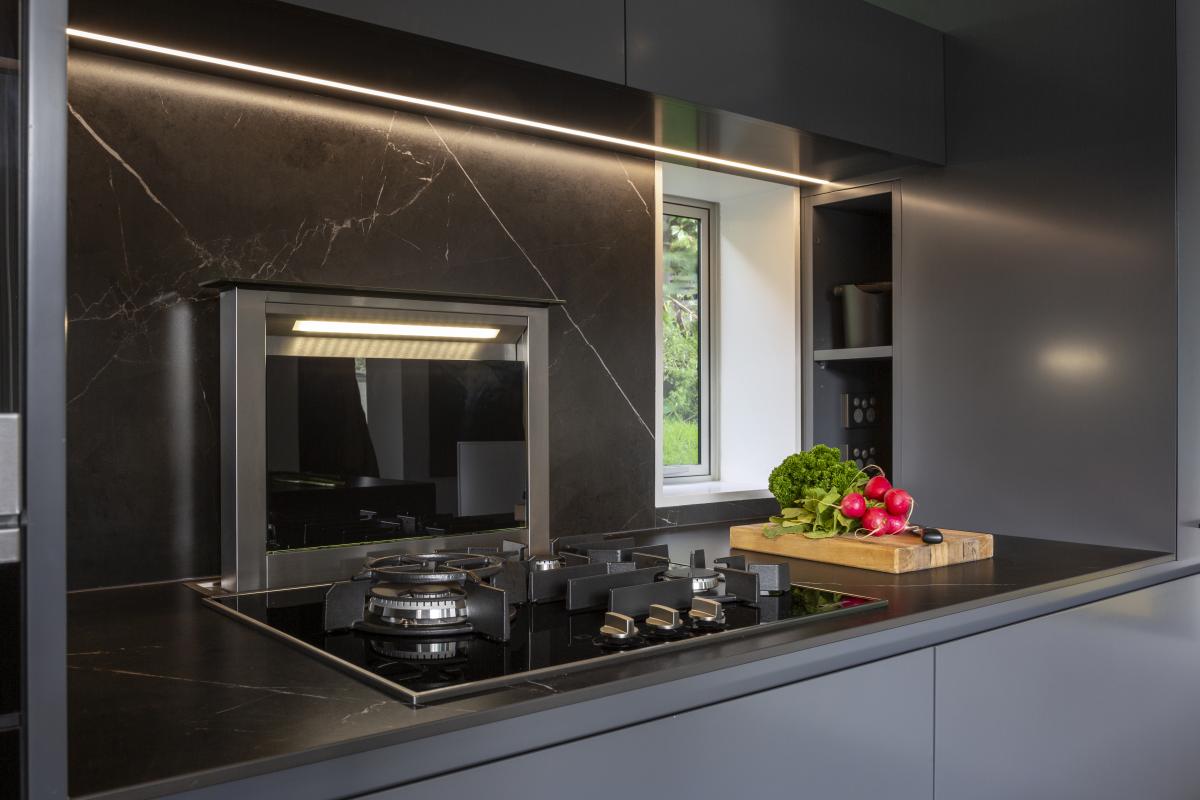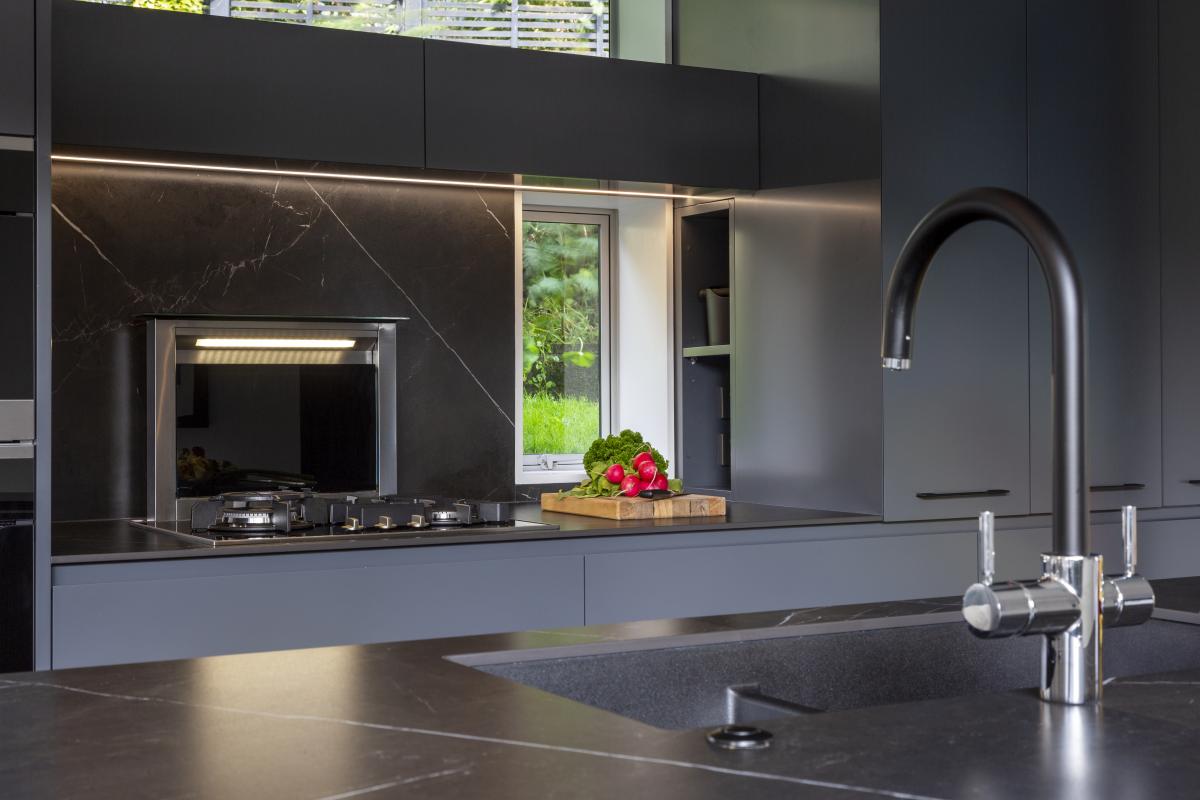 Choosing all these gadgets is one thing, bringing them altogether is quite another, and that’s where the team at Kitchens By Design excel. “Because we were brought in right at the beginning and oversaw all the work, we were able to plan everything well ahead with all the subcontractors, making the whole process very efficient,” says Marianne. “As a team, we go the extra mile to make sure that our clients are satisfied with the final product – and in this case they absolutely love their new kitchen.”