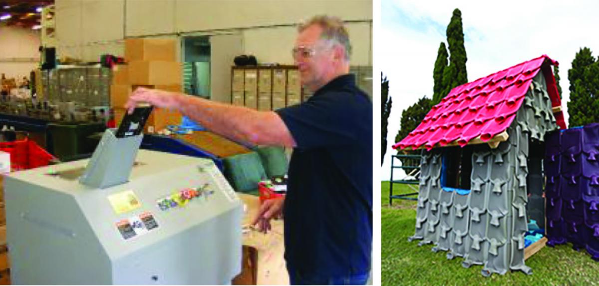 Abilities were recently contracted to destroy 20,000 imported, non-compliant hot water bottles, They found a productive outlet for some of them (after rendered unusable.) A Westlake Boys High School art student made an exhibit for “Sculpture on Shore” exhibition at Fort Takapuna (see photo).