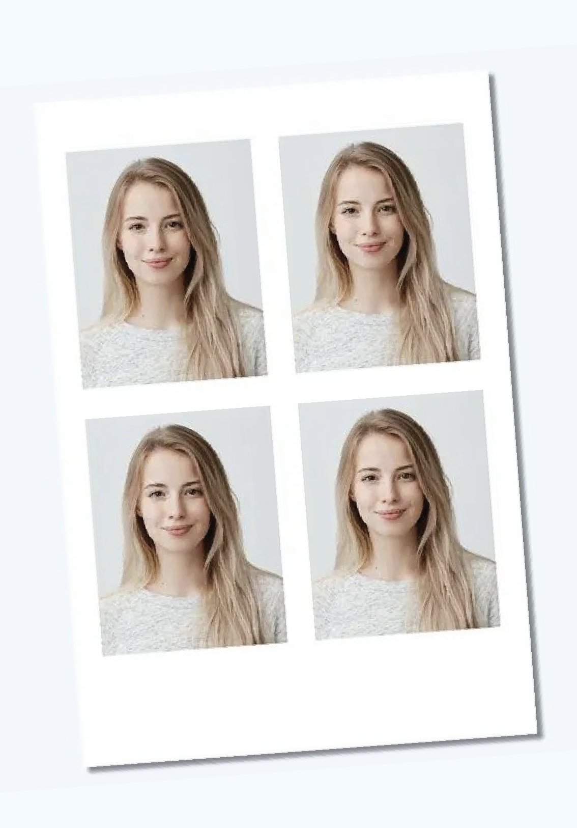 Four passport-sized prints on a single sheet of photographic paper, suitable for official documents or just for fun... Add stickers, decorations and colour filters to your snaps – just remember not to smile if they are for your passport!