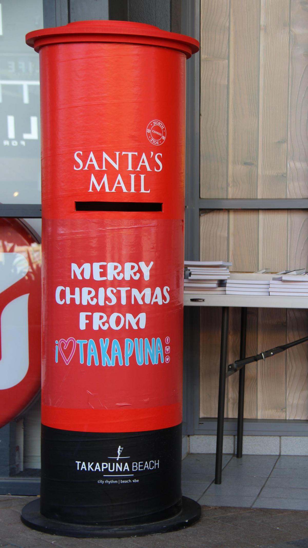 Three special mail boxes have popped up in central Takapuna just in time for Christmas. With special delivery direct to Santa, these are a sure-fire way to get Christmas wish lists to where they need to go. And there’s even the possibility that Santa will reply – as long as the sender has remembered to include their return address. Find the distinctive red boxes during December outside Paper Plus and KiwiBank, and at 38 Hurstmere Road near the Christmas tree.