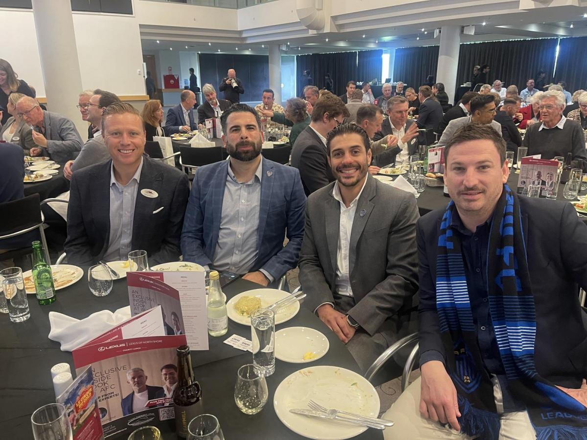 The overnight success of football club Auckland FC – who have their training base at North Harbour Stadium – was the theme for the Lexus of North Shore Charity Lunch on Wednesday, 3 September at the stadium. The crowd of close to 400 enjoyed a fantastic event filled with connection, insight, and celebration. Auckland FC CEO Nick Becker shared how simple ideas—like a low-cost inflatable slide—can transform the fan experience and attract sponsor investment. His focus on creating excitement and reinvesting into the football community was a standout. Terry McFlynn (Football Director), spoke about building a team with talent, resilience, and strong character—“good humans,” as he put it. Players Joe Knowles and Nando Pijnaker, gave a fun look into life as professional players. The MC was Jason Pine, the voice of New Zealand football, who interviewed the guests and kept the energy high throughout. Andrew North, the auctioneer from Harcourts Cooper & Co, finished off the day with humour, maximising fundraising for the annual North Harbour Club AIMES Youth Excellence Awards.