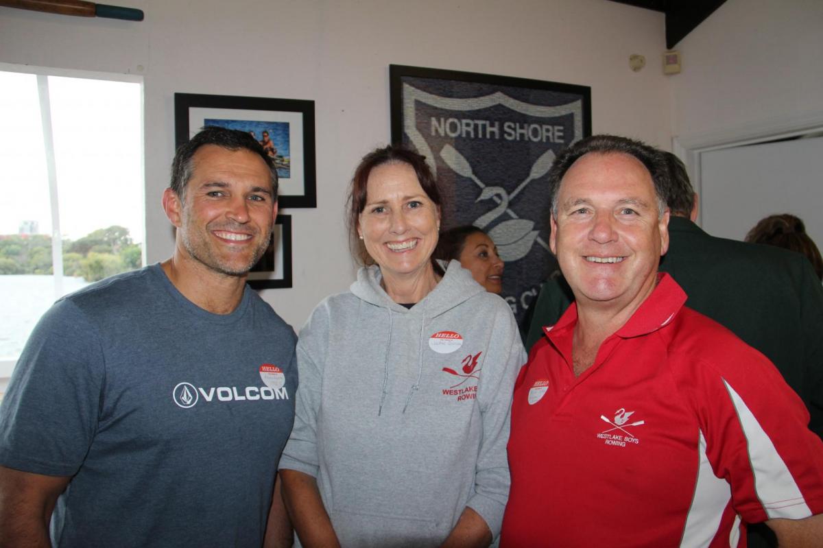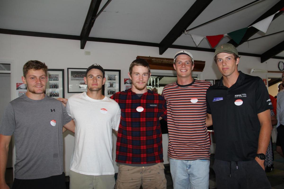 The inaugural Westlake Boys Rowing Alumni Reunion was held in early February at North Shore Rowing Club. The aim of the alumni group is to support the current generation of Westlake Boys rowers – and perhaps maintain Westlake’s proud record of high-achieving Olympian rowers, several of whom were present. Guests also included members of the current and past coaching teams, parents, and past Westlake rowers, all keen to catch up and to watch the racing. This took place on a windy Lake Pupuke in front of the clubhouse, with the Westlake eight pitting their skills in a contest for the inaugural alumni trophy against a “mystery” team, selected by Eric Verdonk, single sculler Olympian and past Westlaker.