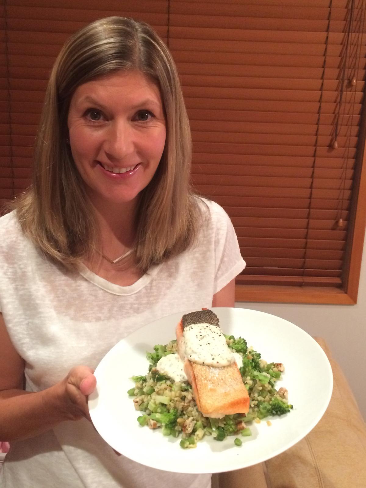 Kate Joyce is a self confessed foodie who is originally from the UK. She moved to New Zealand six years ago and loves the Shore for it’s relaxed vibe and great beaches. Kate lives in Devonport with her husband Monty and two children Martha and Miller. She’s always been passionate about food and even operated a cooking service for her work mates a few years back. This month Kate shares a favourite recipe for crispy salmon and freekeh tabbouleh that she discovered in My Food Bag originally.